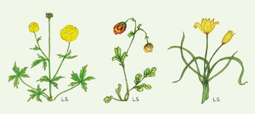 Wir haben diesen einmaligen Satz von fünf Grußkarten aus Motiven erstellt, die Loki Schmidt im Laufe vieler Jahre entweder zur Vorstellung der "Blume des Jahres" oder für Porzellanteller und -tassen gestaltete.