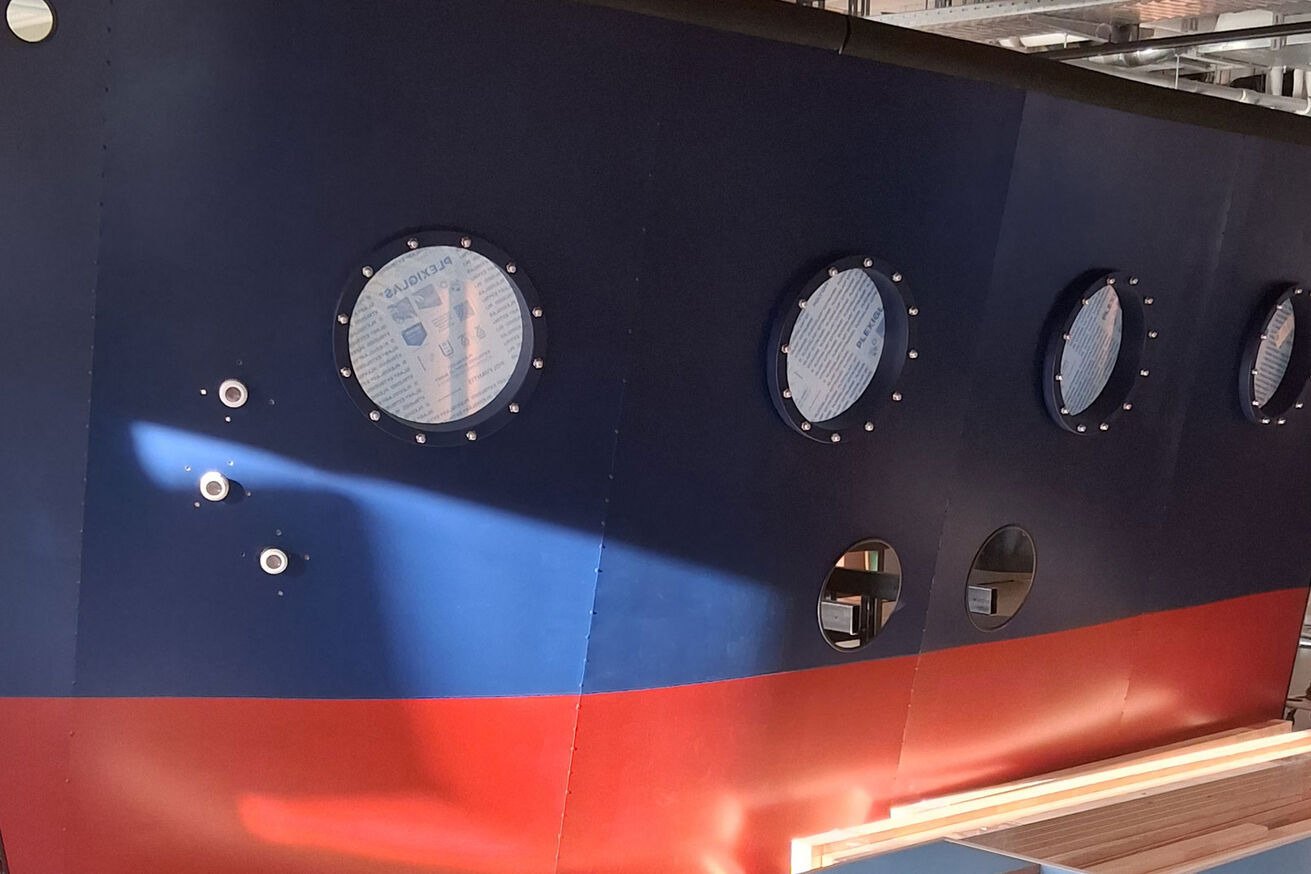 Und an Schiffsrümpfen! Ein 4 x 2m großes Modell zeigt, welche Arten aus fernen Ländern zu uns reisen: Waschbären, Bananenspinnen, Wollhandkrabben, Seepocken. Werfen Sie einen Blick in die Bullaugen und entdecken sie ihre Geschichten.