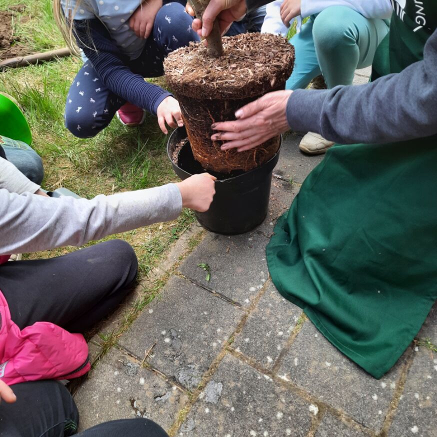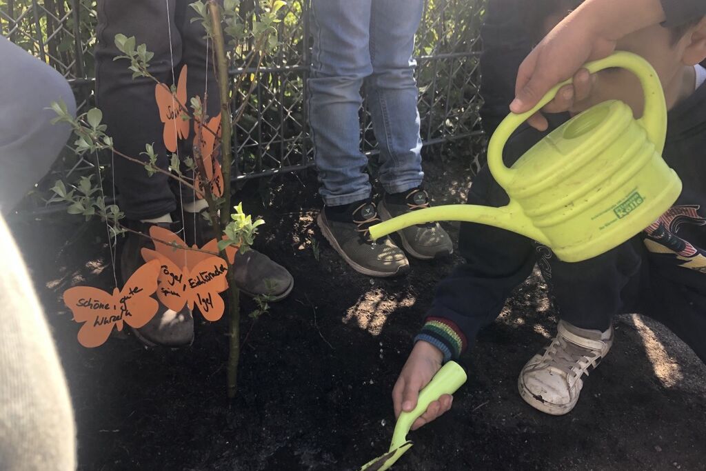 Alle können mitmachen! Als Spendende oder als Pflanzende, damit Schulhöfe und Kitagelände grüner, klimagerechter und artenreicher werden! Melden Sie sich gerne bei uns.