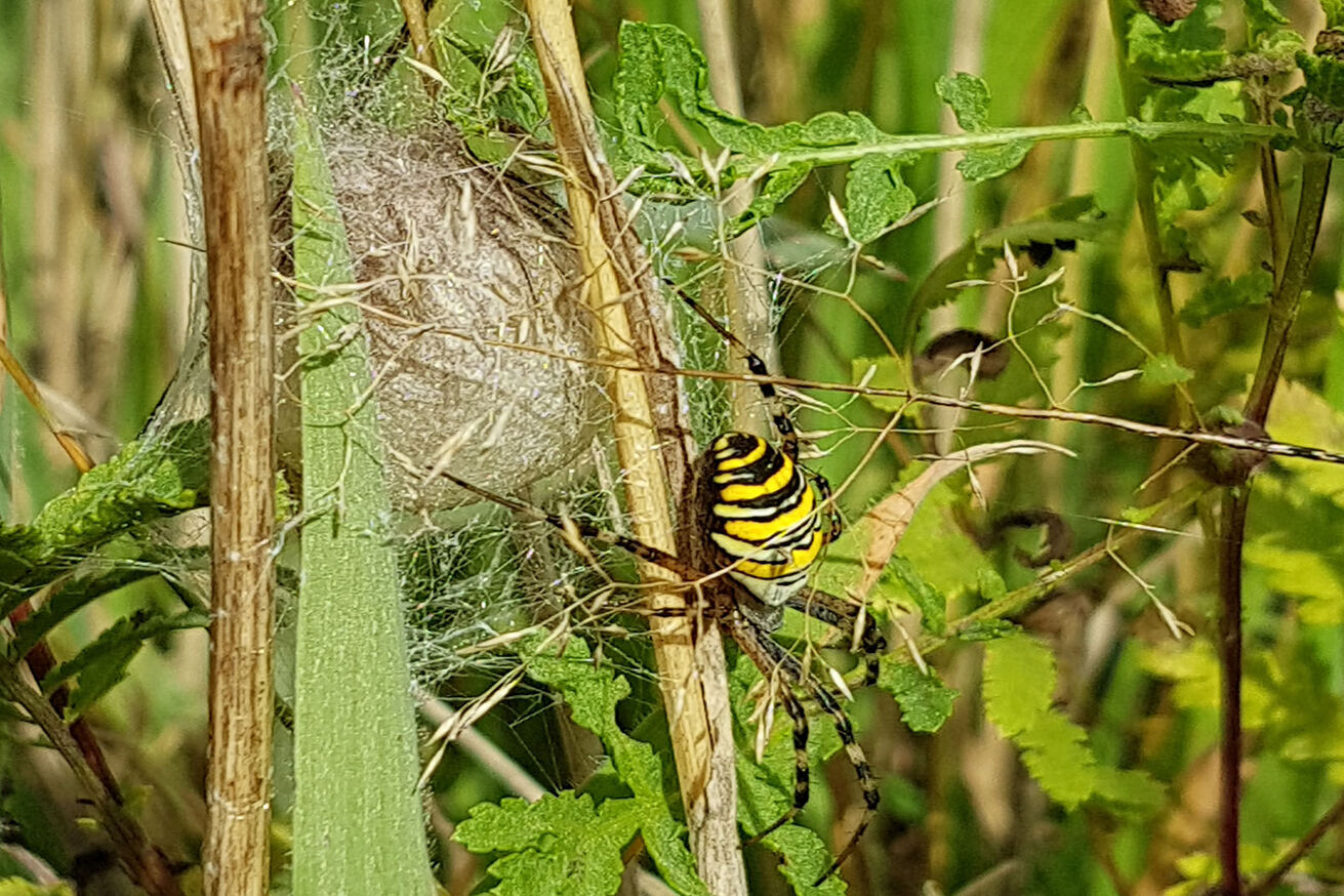 Die Gräben dienen Grasfrosch und Erdkröten als Laichgewässer. Auf den Blüten der Gelben Schwertlilie ruhen im Sommer Libellen wie der Vierfleck, die Frühe Adonislibelle und die Weidenjungfer. Letztere nutzt vermutlich auch die noch jungen Kopfweiden zur Eiablage. Die Wespenspinne fängt mit ihrem im Gras gespannten Netz neben Libellen, Faltern wie dem Kleinen Wiesenvögelchen und dem Ampfer-Grünwidderchen auch die an feuchte Lebensräume angepassten Goldschrecken und Kurzflügeligen Schwertschrecken. Diese findet man vor allem in der Sumpfzone, wo auch der gefährdete Sumpfquendel und die Sumpfdotterblume - Blume des Jahres 1999 – gedeihen. Der an wechselnde Wasserstände angepasste Sumpfquendel ist eng mit dem bekannteren Blutweiderich verwandt, was man aufgrund seiner geringen Wuchshöhe nicht vermuten würden.